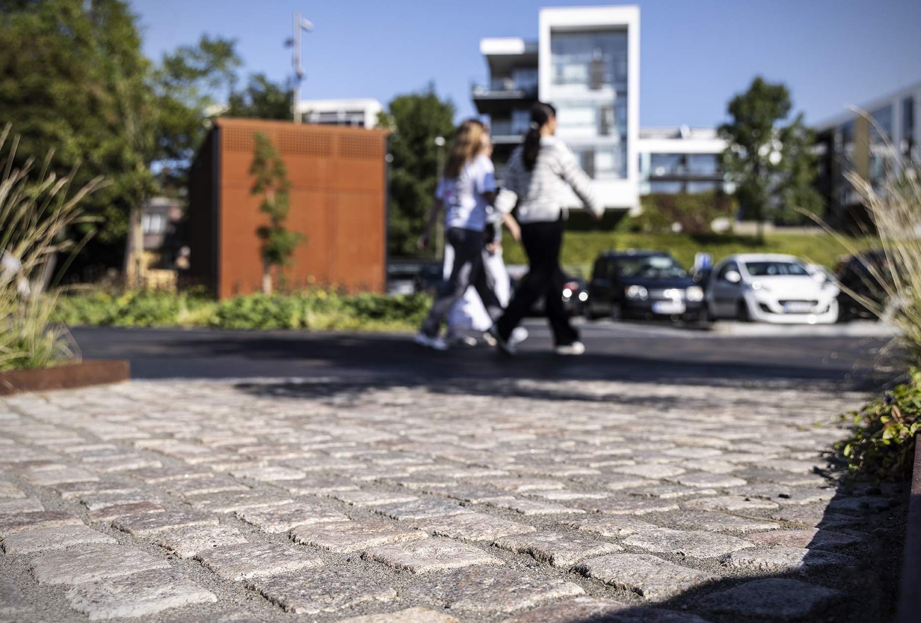 The paving is the same paving stone that is also used in the pedestrian zone, so the area is naturally tied together. The joints are strength joints from Lithomex’s L-series, ensuring that the stone area is weed and maintenance free.